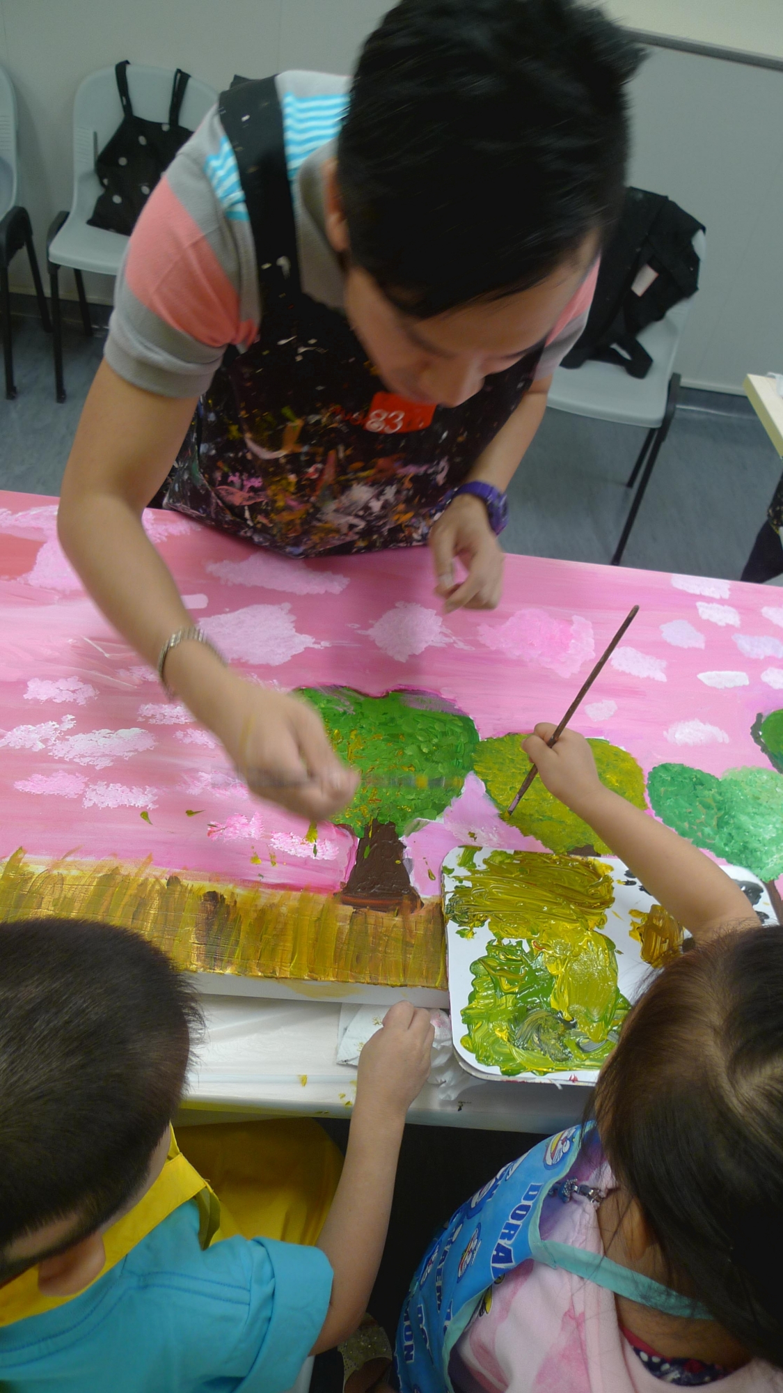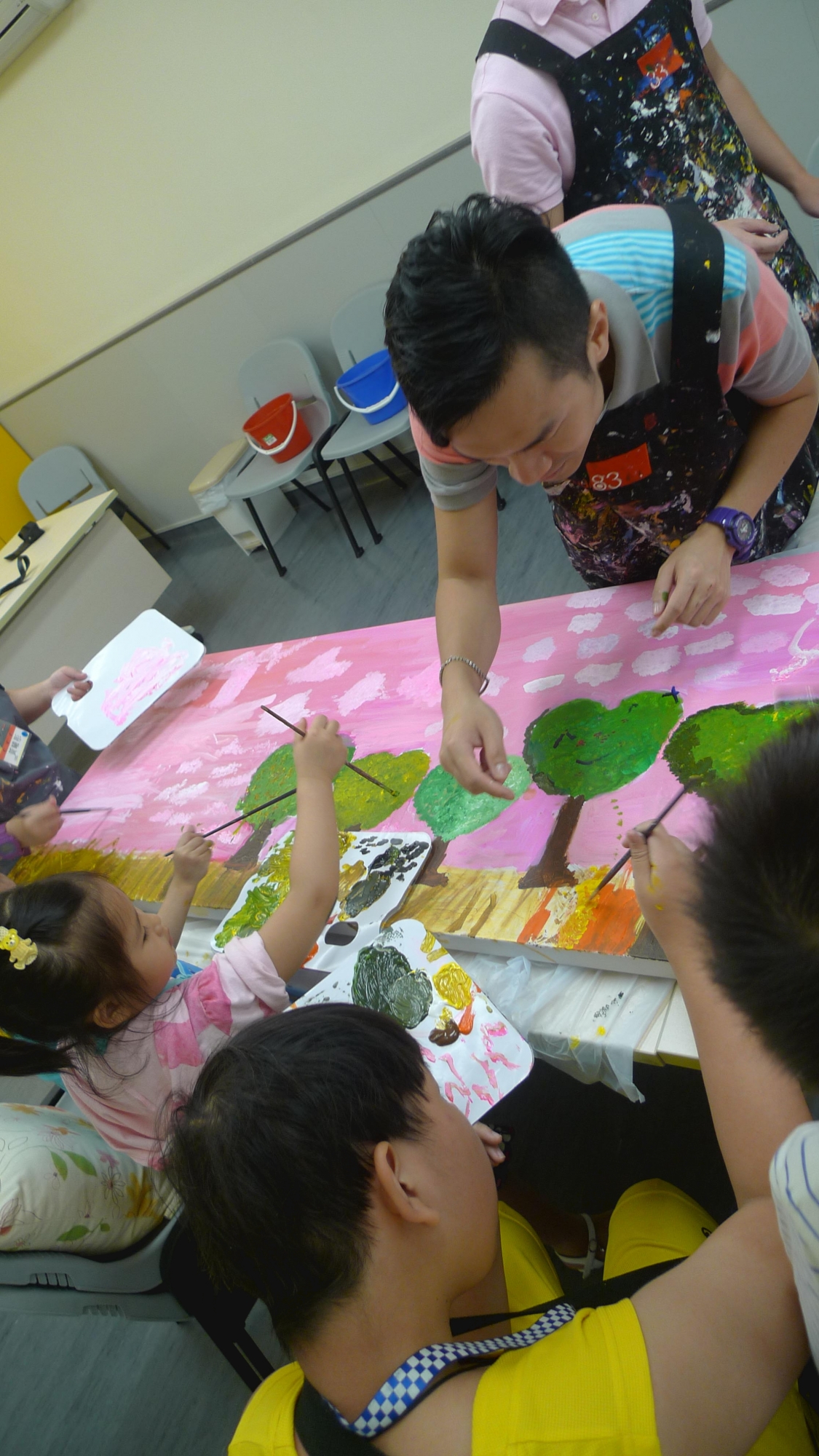得到Studio 83一班專業油畫導師的協助,CCF一班康復者有機會上堂學習繪畫油畫的技巧,在四堂的基礎課程後,更一起合力畫出一幅大型的油畫,畫上是一棵棵的愛心樹,都是康復者用盡心機上色,技巧可能不及專業畫家,但誠意絕對令這幅畫添上更深一層的意義!