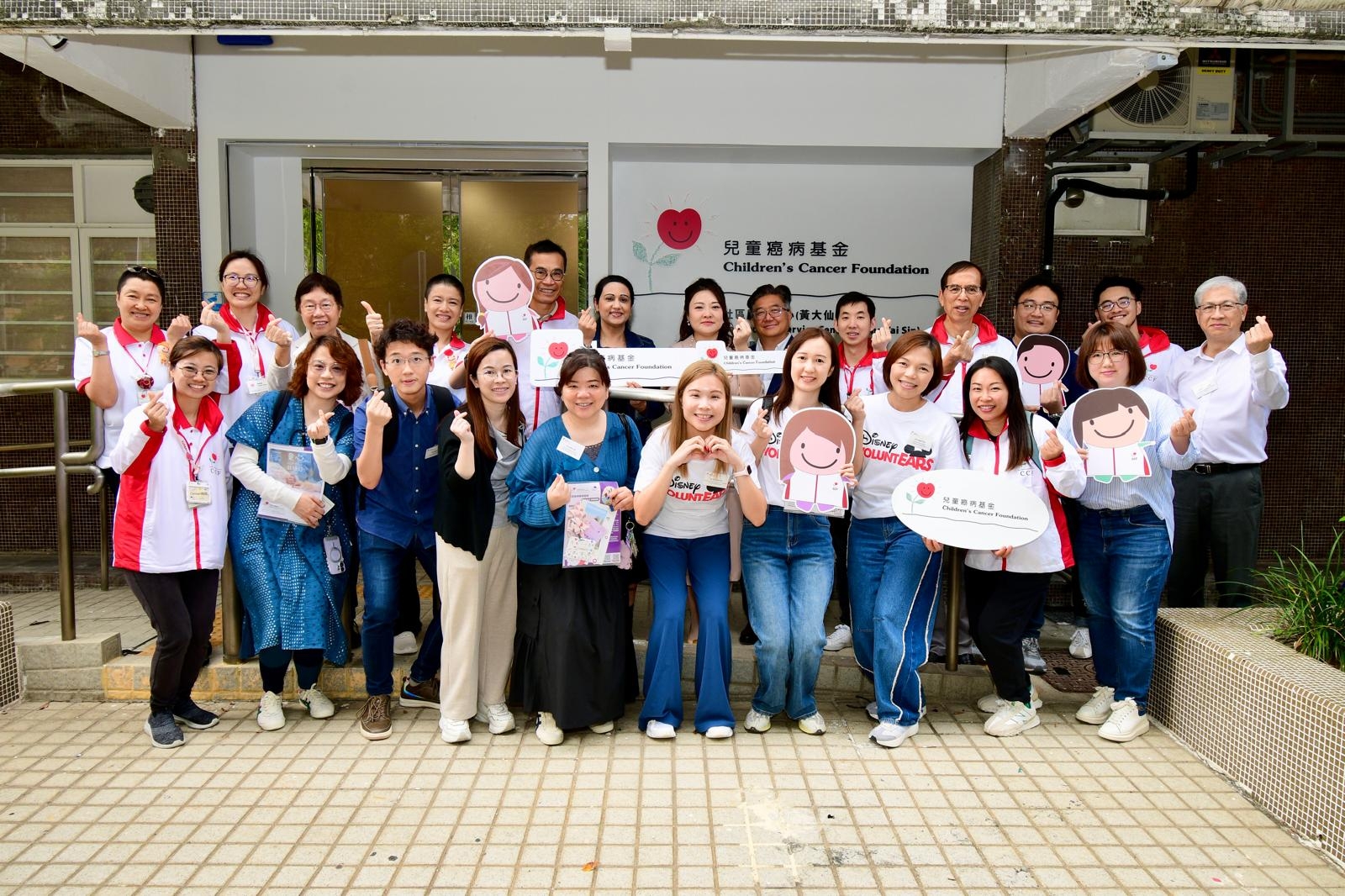 主禮嘉賓兒童事務委員會非官方委員黎月兒校長、「王成艷童健天地」命名贊助人祝啓瑤女士、香港迪士尼樂園度假區代表趙如敏女士、「王成艷童健天地」顧問鄺秀芝校長、兒童癌病基金副主席林子右先生,以及基金理事李志光教授和陸志聰醫生一同主持剪綵儀式