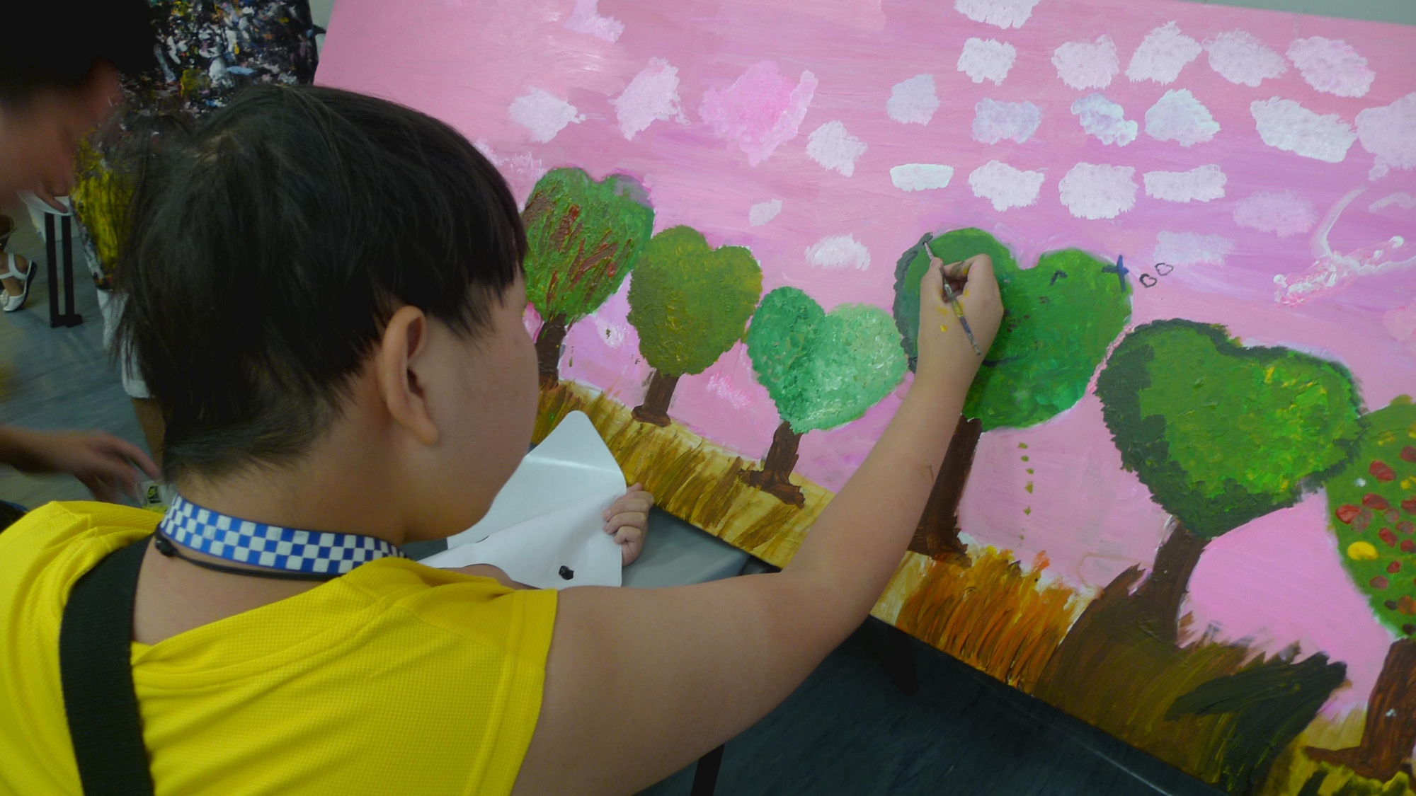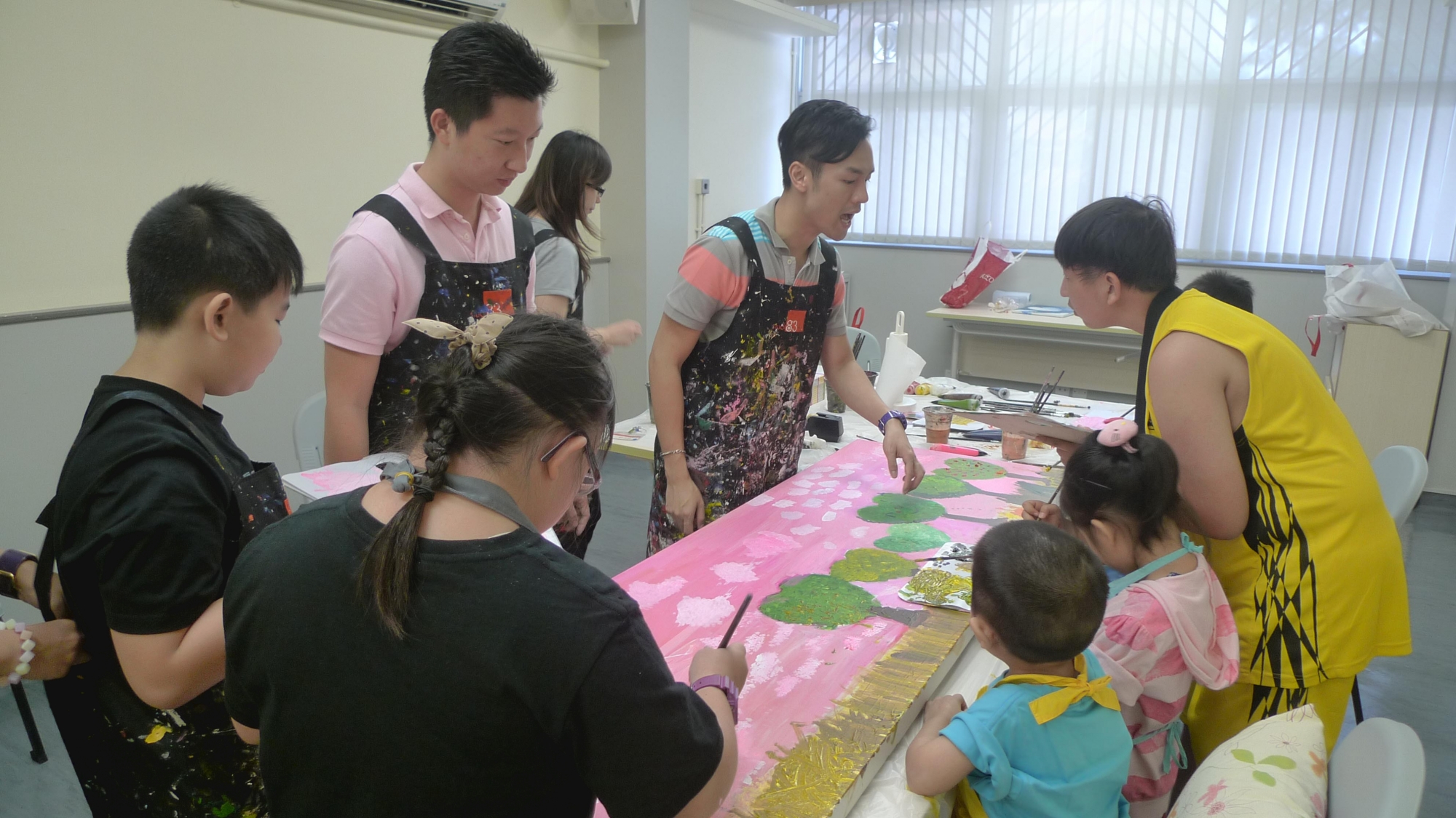 得到Studio 83一班專業油畫導師的協助,CCF一班康復者有機會上堂學習繪畫油畫的技巧,在四堂的基礎課程後,更一起合力畫出一幅大型的油畫,畫上是一棵棵的愛心樹,都是康復者用盡心機上色,技巧可能不及專業畫家,但誠意絕對令這幅畫添上更深一層的意義!